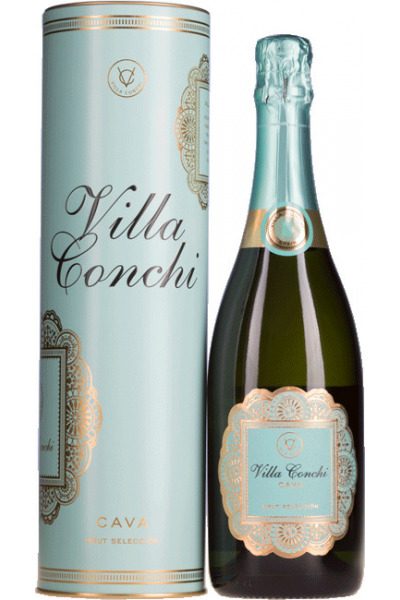 Villa Conchi Brut Selección (in metalen geschenkkoker) is goud met briljant groene tinten. Elegant met fijne bubbels. De blend is gemaakt van 30% Xarel-lo, 30% Parellada, 30% Macabeo en 10% Chardonnay. In de neus een goede intensiteit met fruit aroma’s en nuances van toast. De smaak is heerlijk fris, rijk, aangenaam en rond met een lange finish. Deze mousserende wijn doet niet onder voor een goede Champagne!